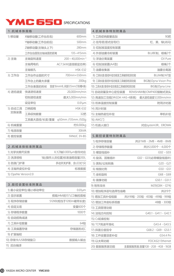 YASDA亚司达加工中心 YMC650